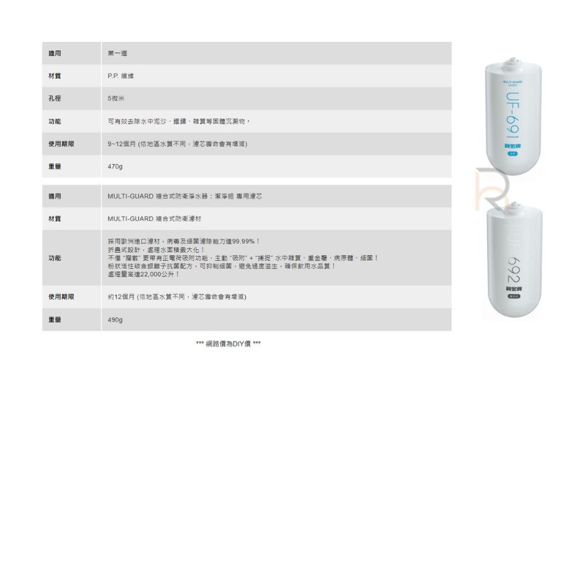 一年份濾芯 共二支